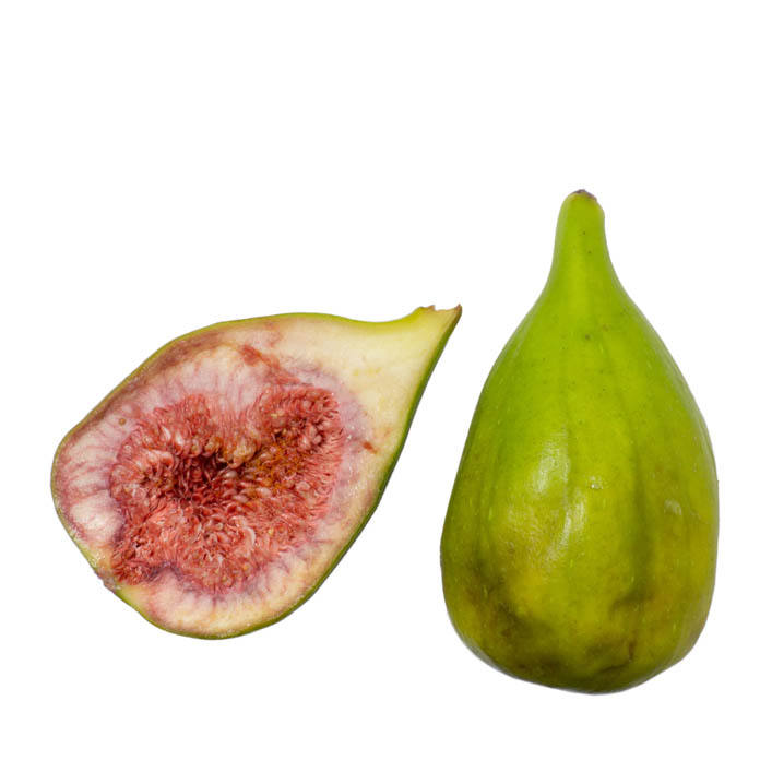 Eigenschaften: bis -10° frostresistent, ovale, grüne Frucht, ca. 5 cm, weißlich-rotes Fruchtfleisch, süß
